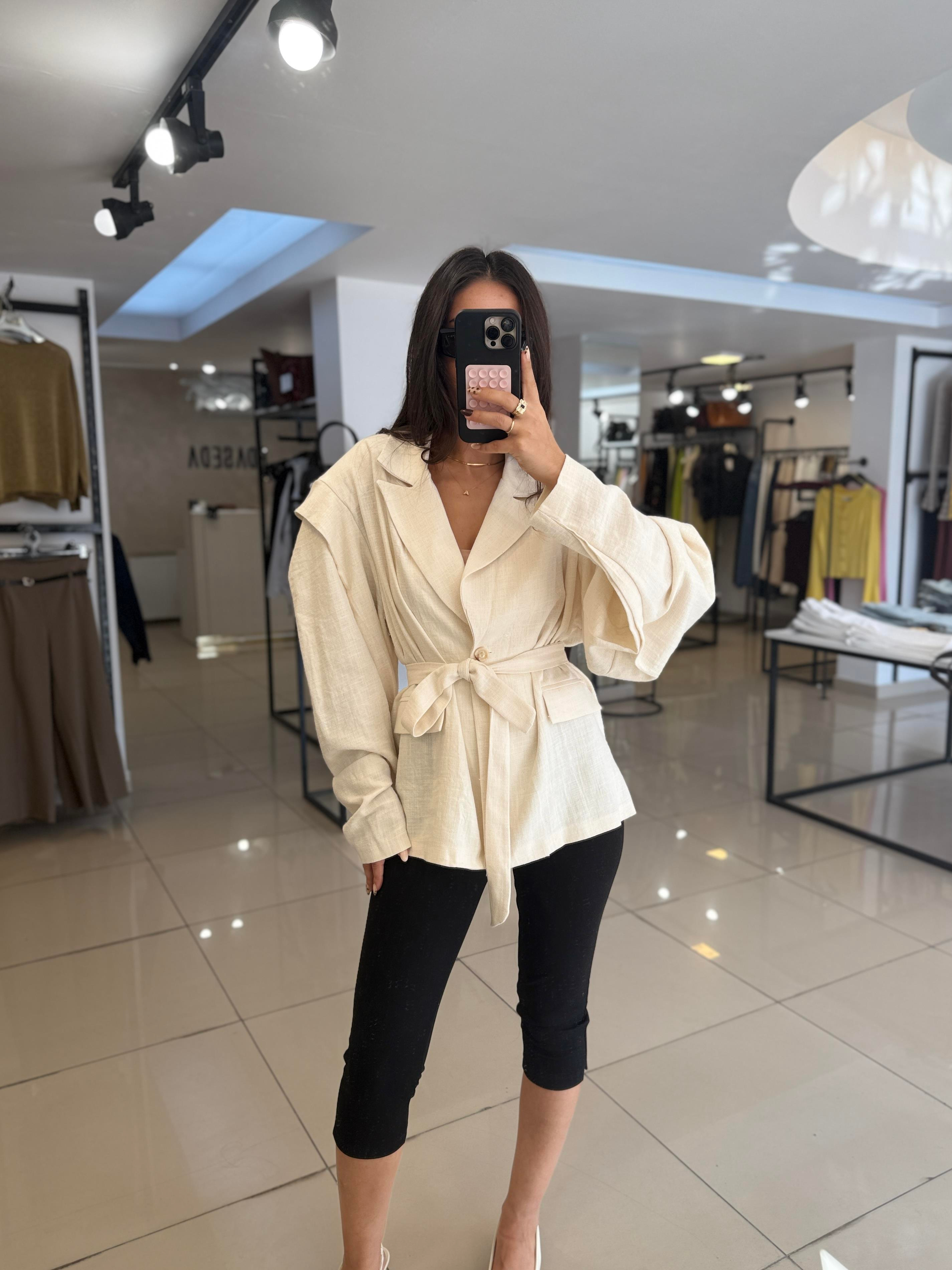 EKRU KETEN BALON KOL OVERSIZE CEKET