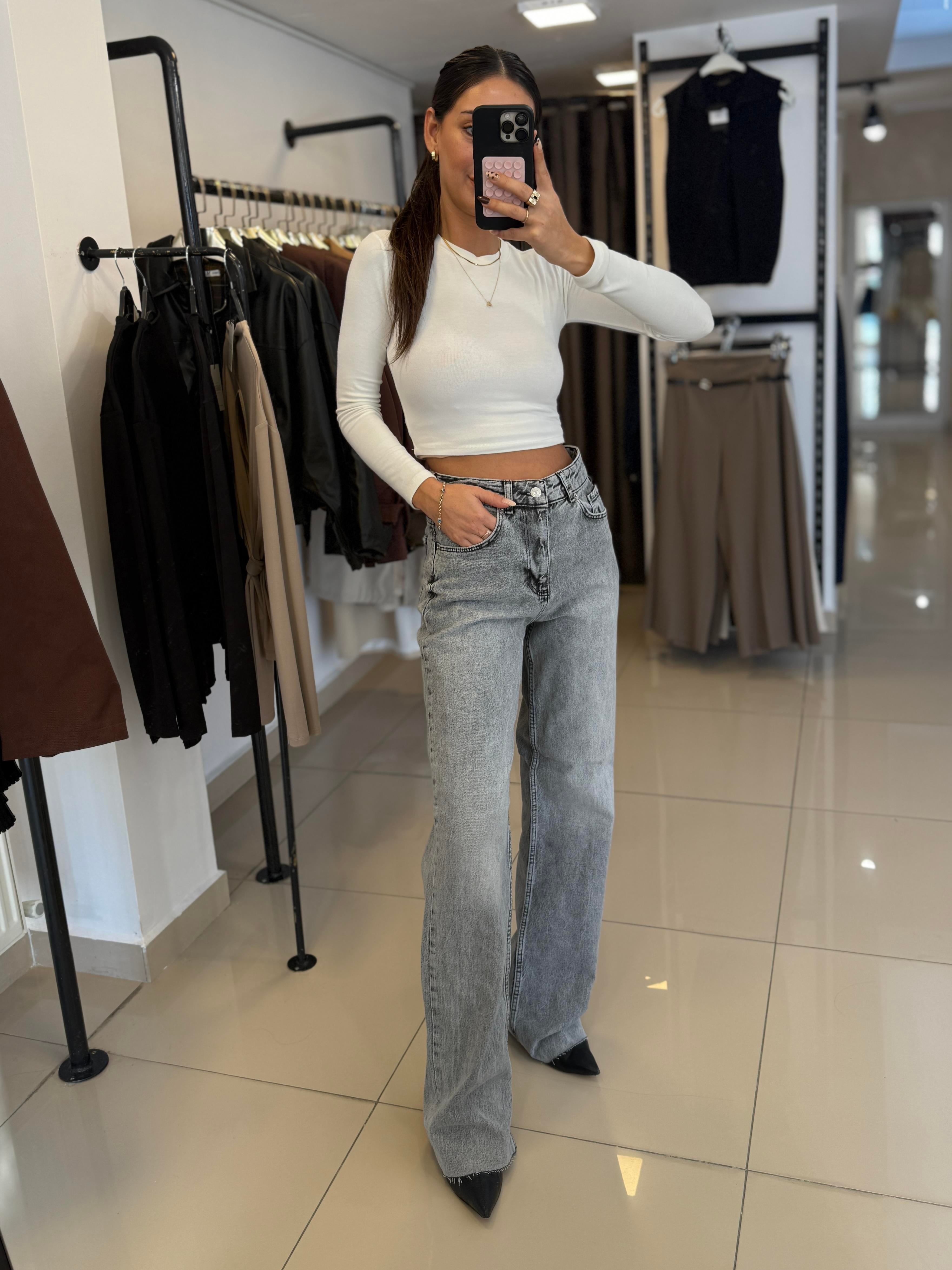 GRİ PALAZZO KESİK PAÇA JEAN PANTOLON