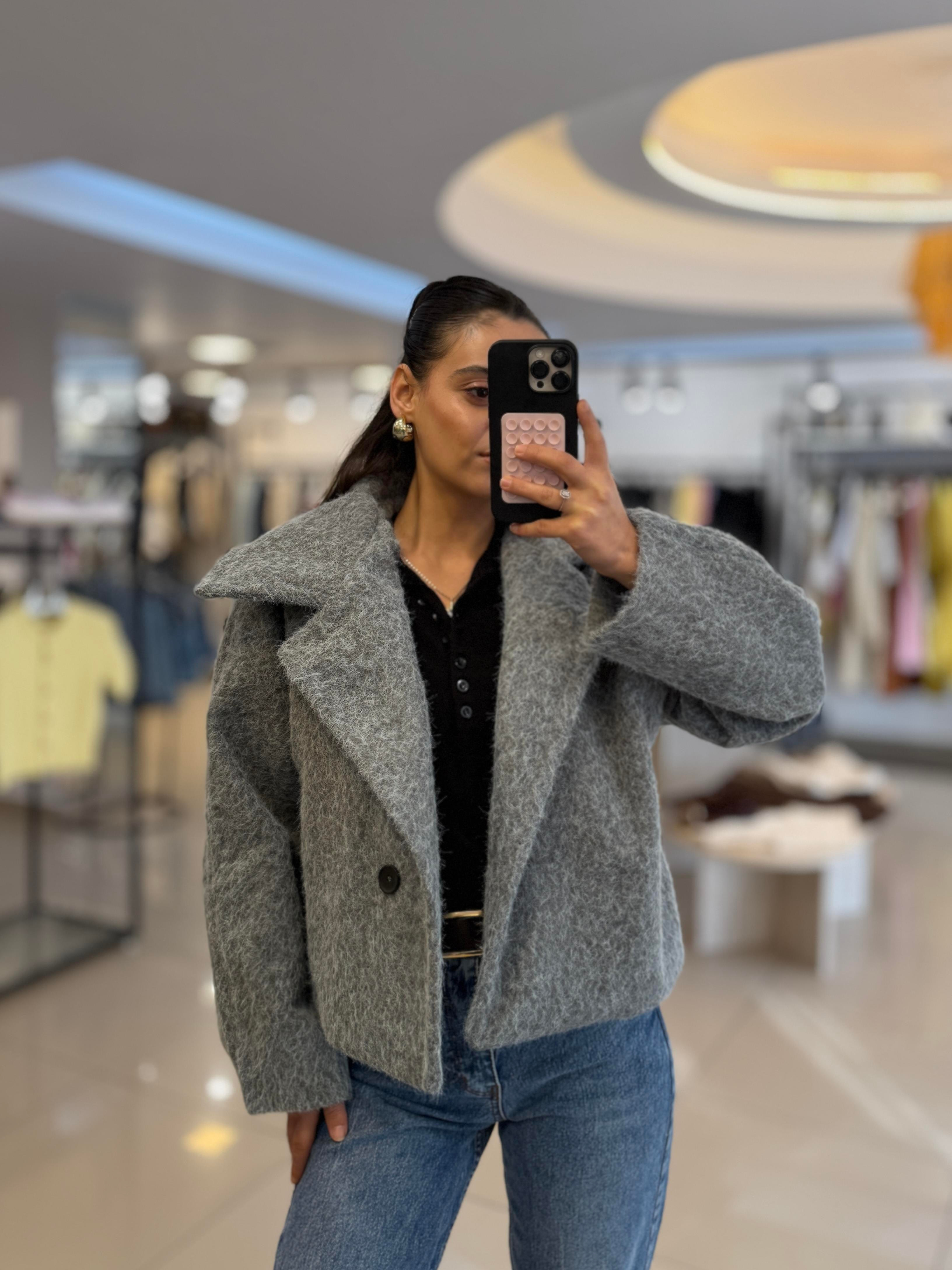 GRİ TEK DÜĞME KISA KAŞE KABAN