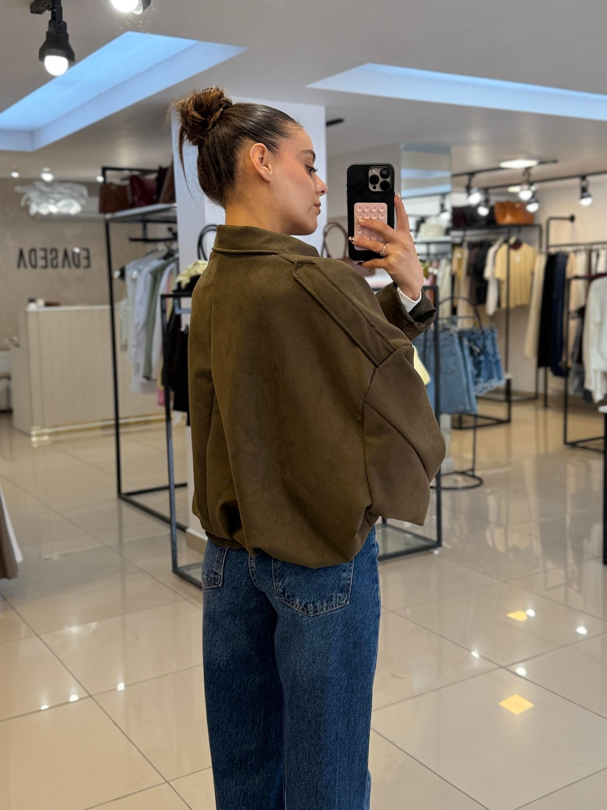 HAKİ SÜET FERMUARLI DÜŞÜK OMUZ BOMBER CEKET