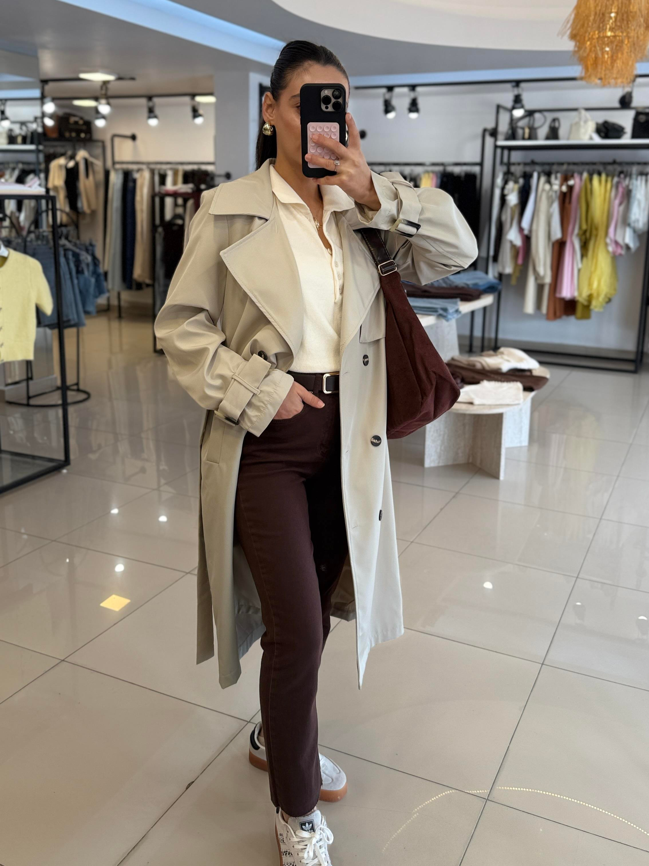 KAHVERENGİ BOYFİT KESİK PAÇA JEAN PANTOLON