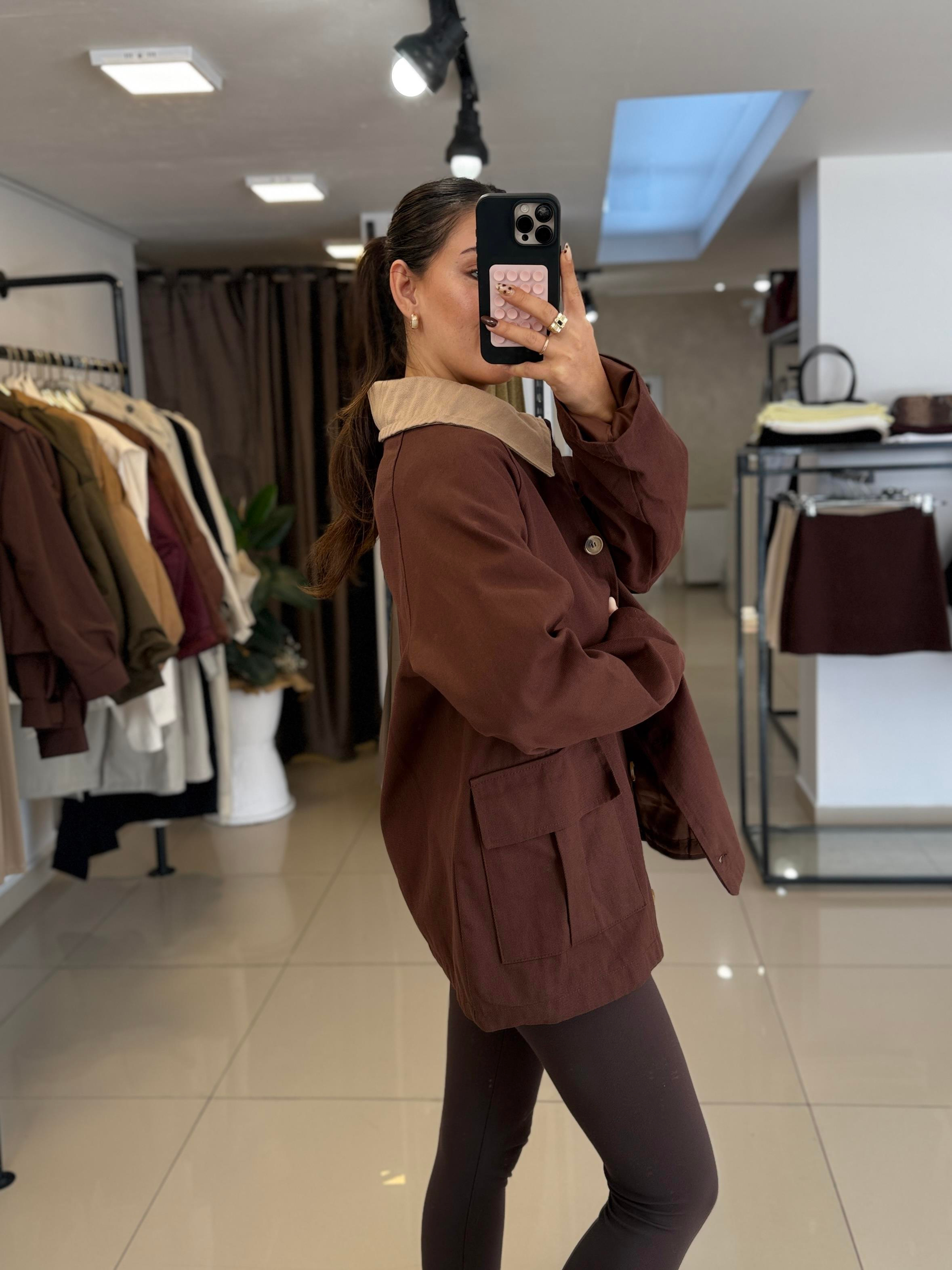 KAHVERENGİ KADİFE YAKALI ASTARLI CEKET