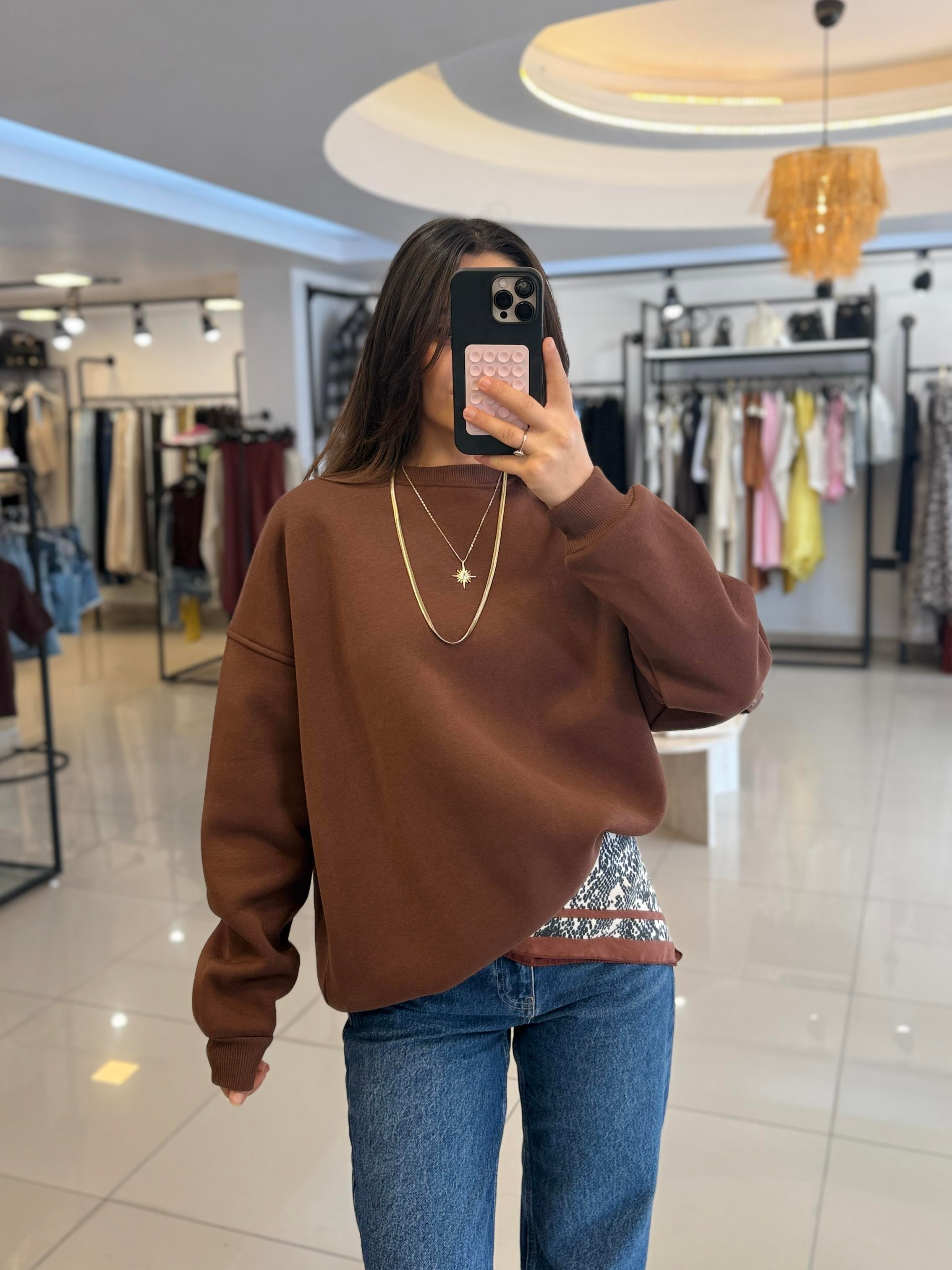 KAHVERENGİ ŞARDONLU BİSİKLET YAKA SWEATSHIRT