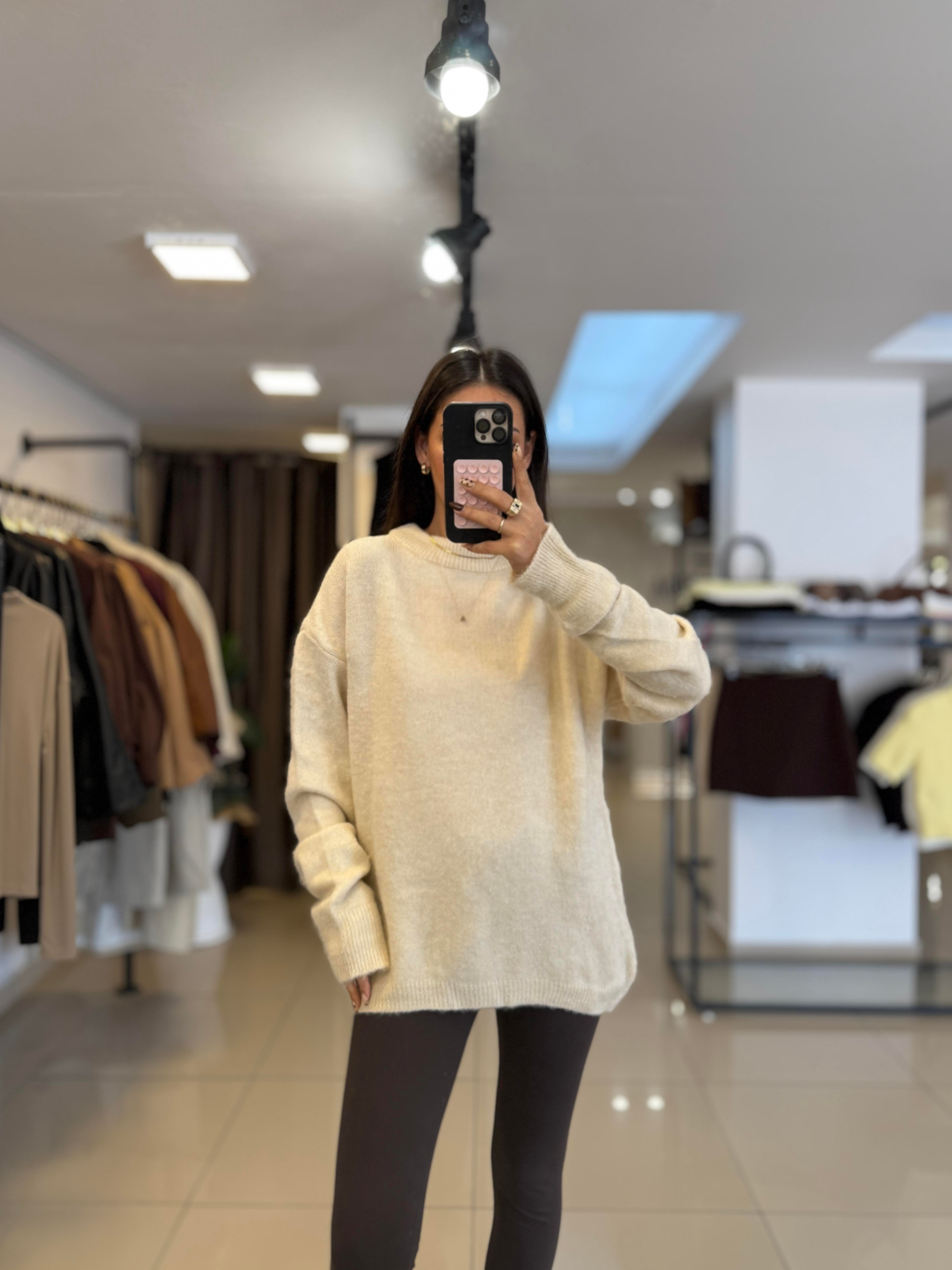 MASSİ EKRU BİSİKLET YAKA OVERSİZE YUMOŞ KAZAK