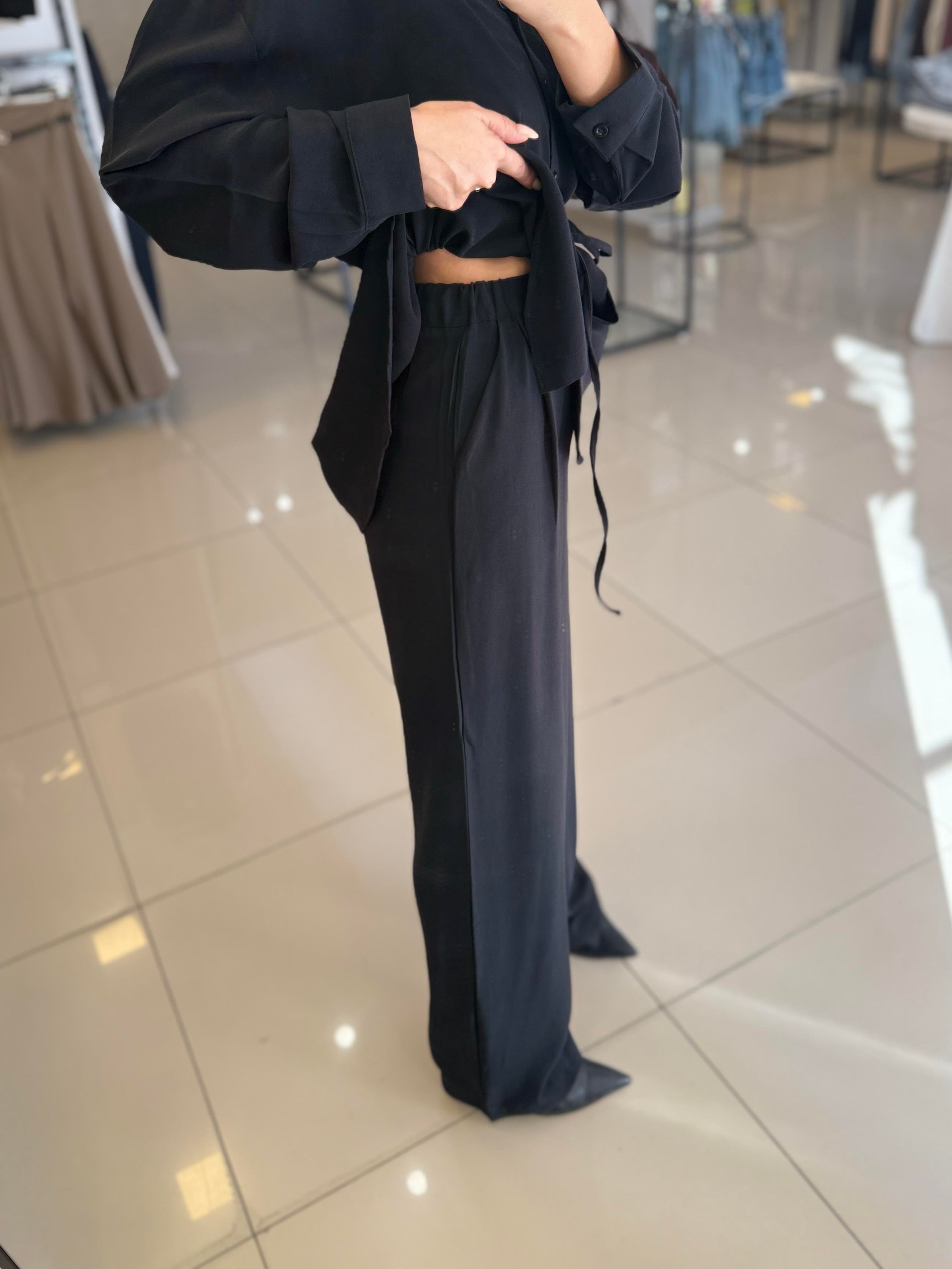SİYAH BELİ BAĞLAMALI GÖMLEK PANTOLON TAKIM