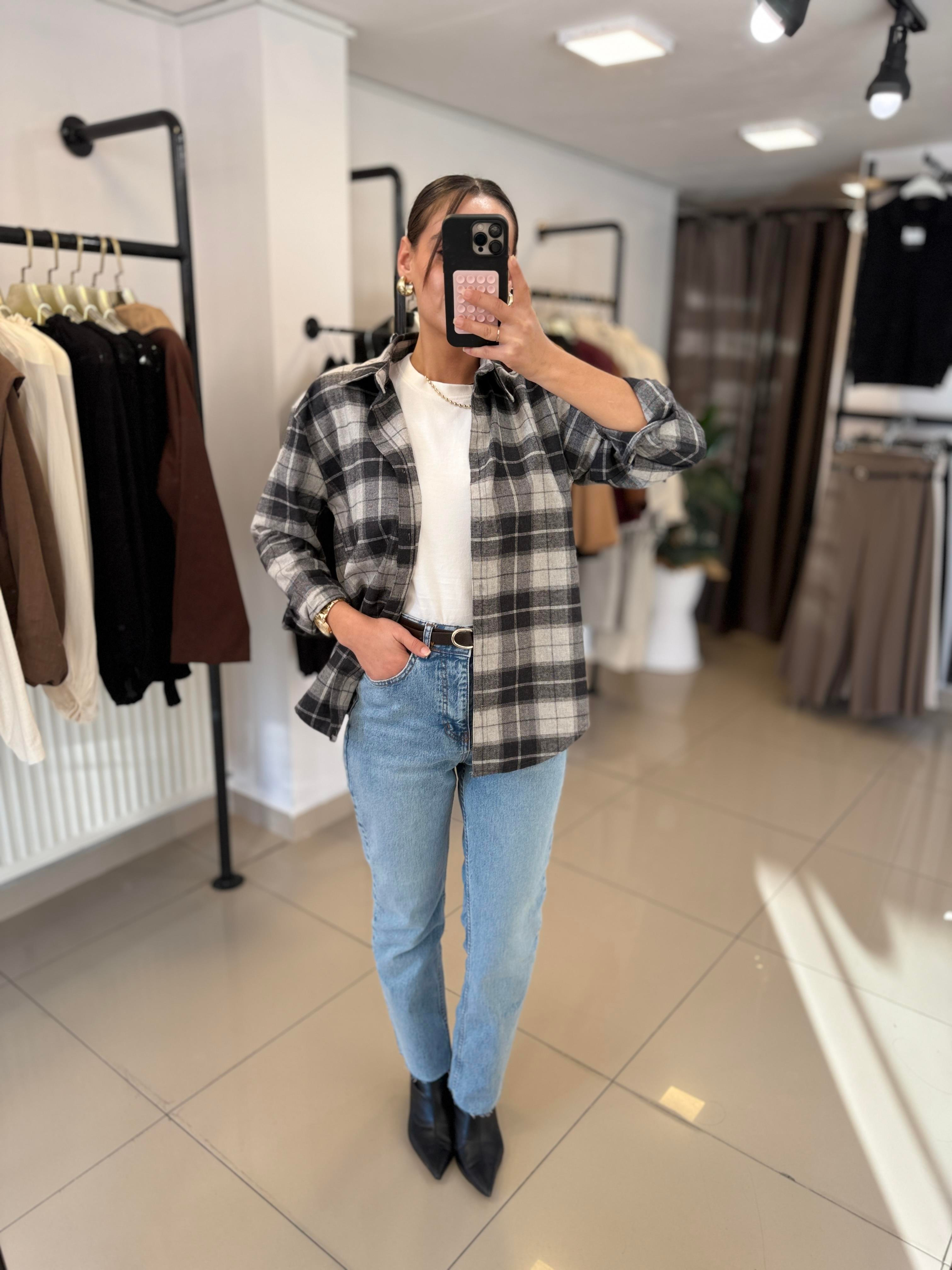 UZUN KOLLU, EKOSE DESEN GÖMLEK