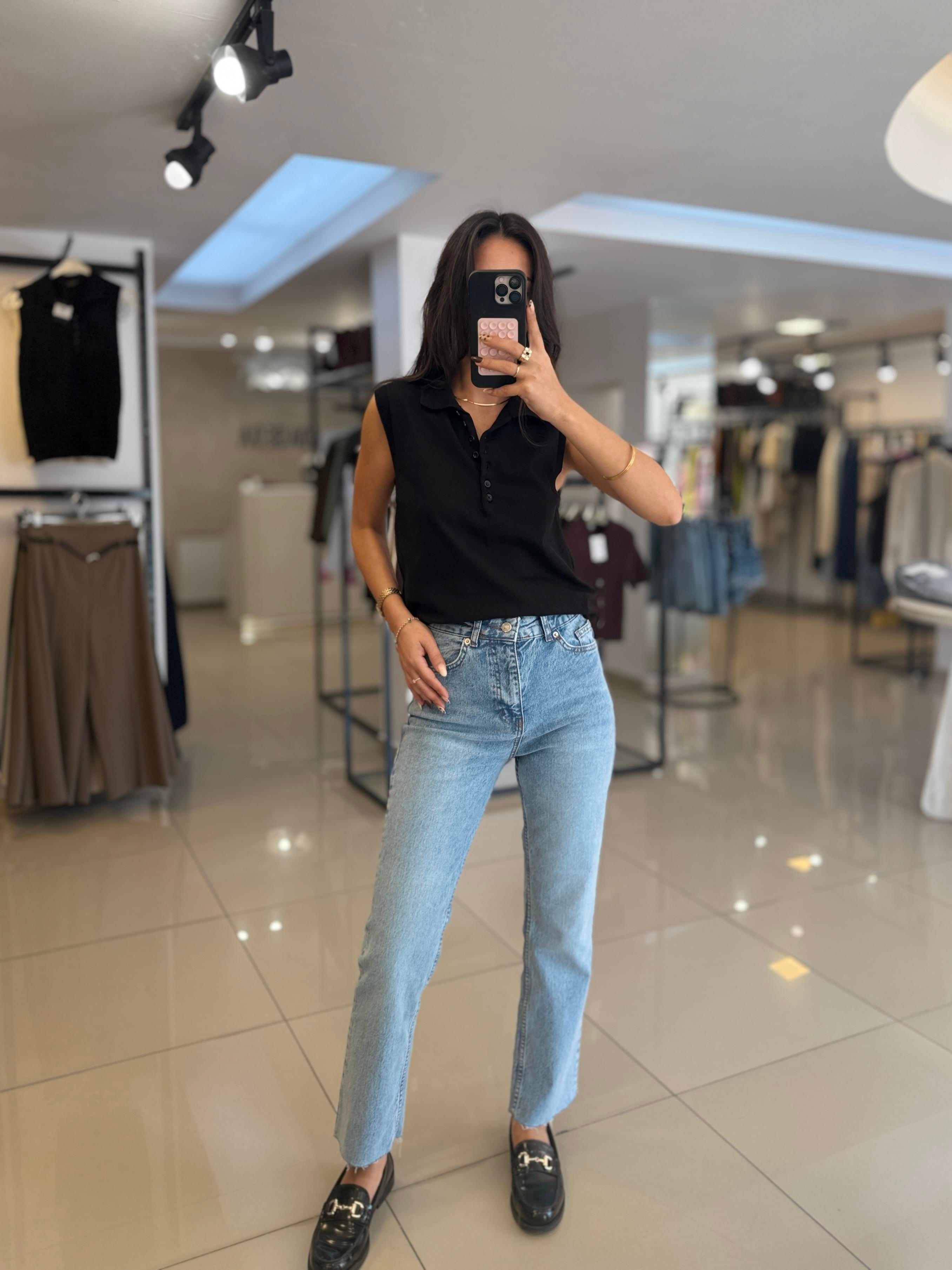 SİYAH POLO YAKA DÜĞMELİ SÜVETER
