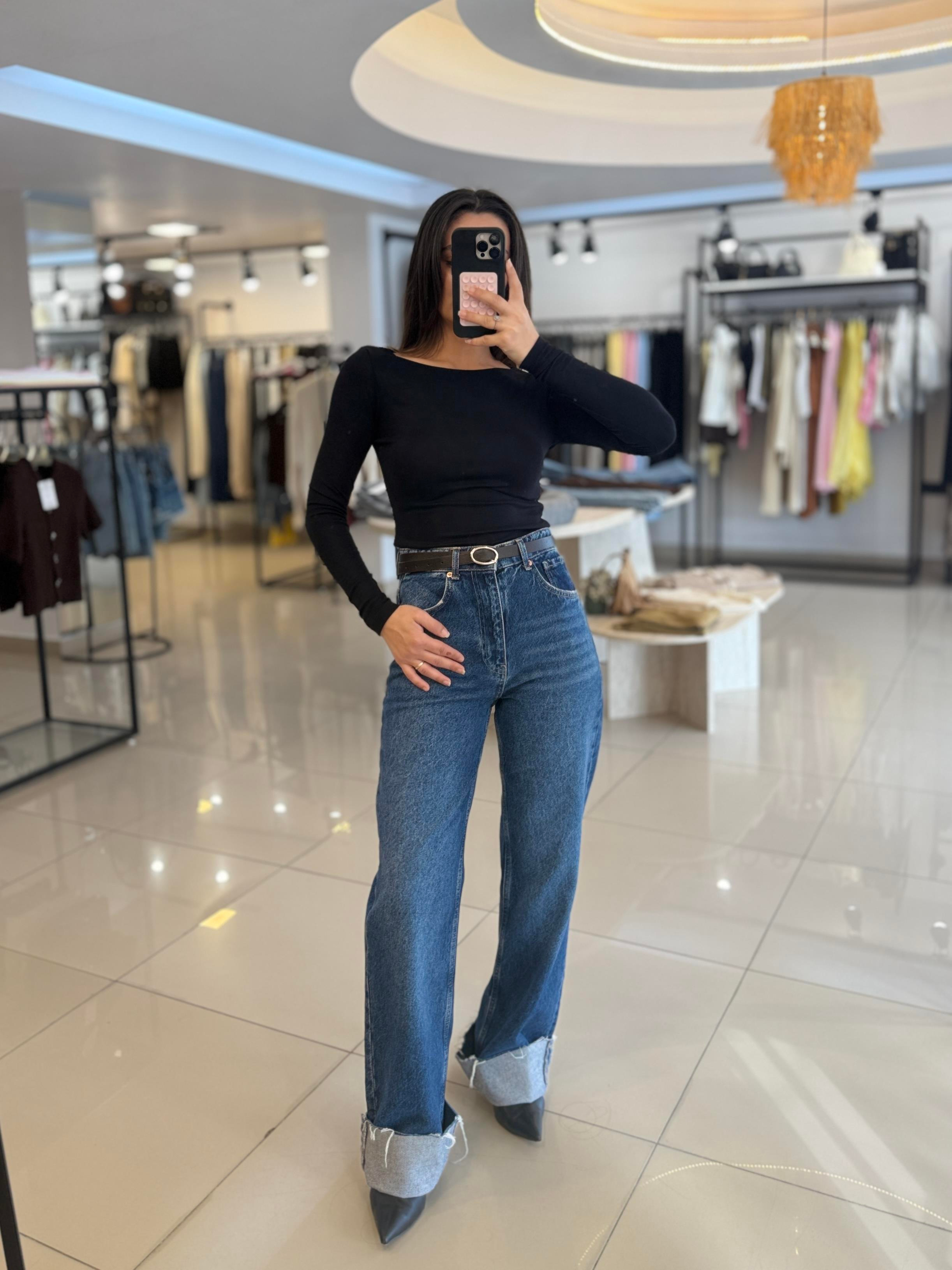 SİYAH PRENSES YAKA PARMAK GEÇMELİ BLUZ