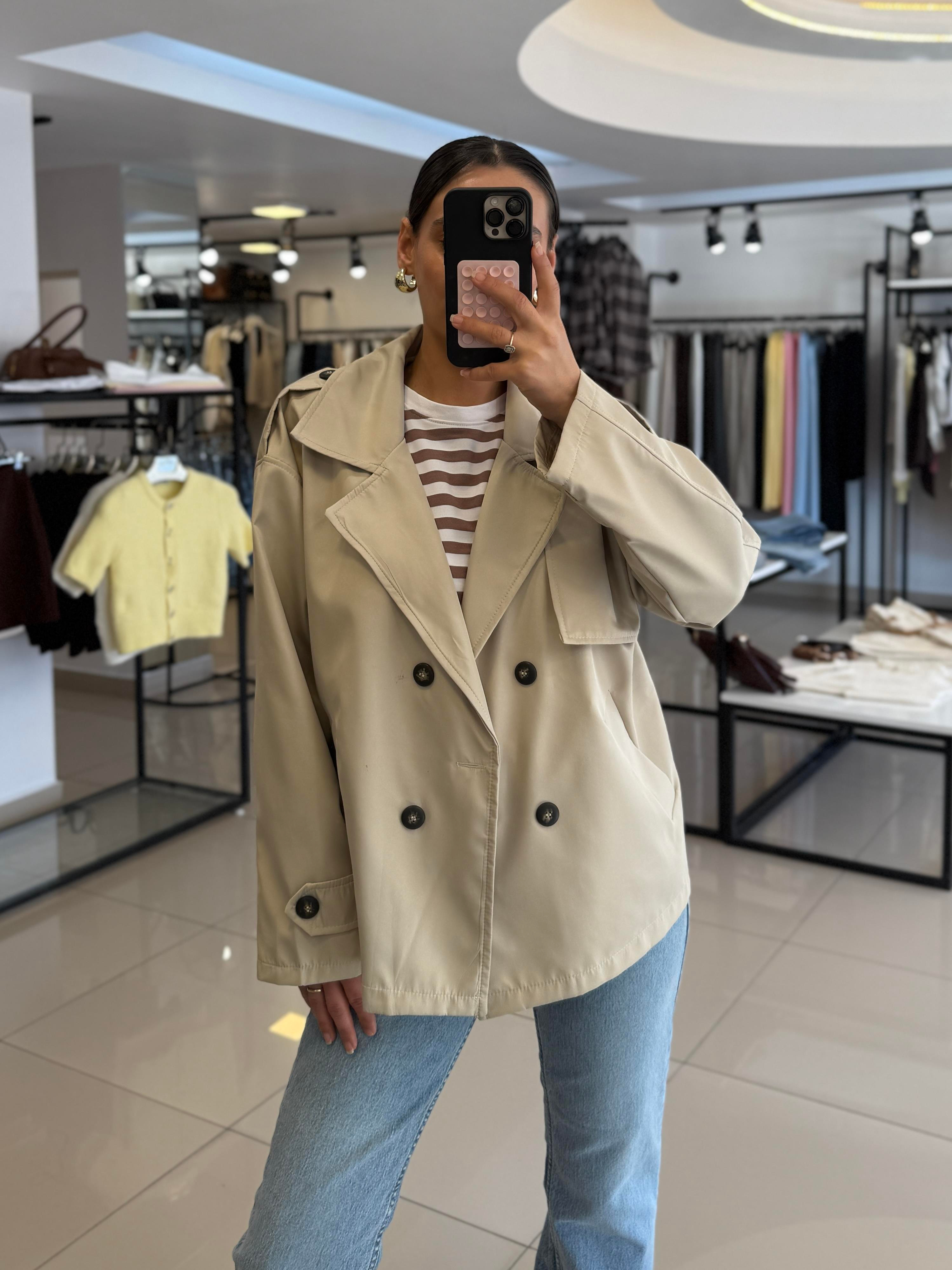 TAŞ RENGİ KISA KLASİK TRENÇKOT